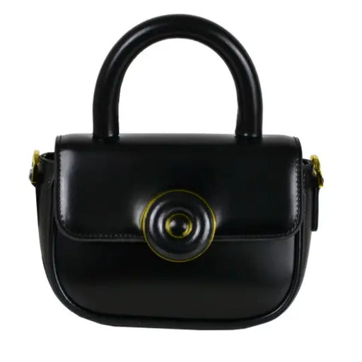 About this product This sophisticated handbag features a sleek black leather exterior, exuding elegance and style. Its structured design includes ...
