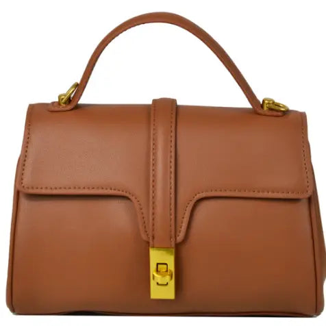 About this product This sophisticated handbag features a sleek brown leather exterior, exuding elegance and style. Its structured design includes ...
