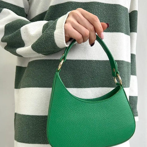 About this product Italian Baguette Leather Crossbody Bag 100% Leather Made in Italy Size: 8" x 7" x 2.3" Leather Strap 1 compartment Pocket