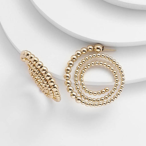 About this product Glossy and graduated size pearl shaped beads comprise this chic swirl richly toned 14k gold filled hoop earrings. Wear them alo...