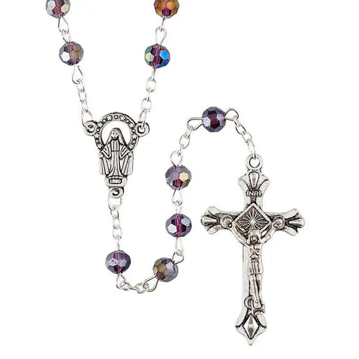 About this product: This beautiful Amethyst Glass beaded rosary from Berkander features elegant silver capped beads, on a meticulously detailed cr...