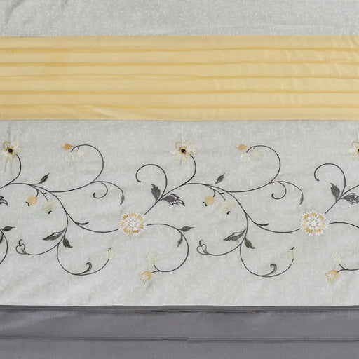 About this product This faux silk pieced comforter features a geometric embroidery design that adds charm and texture to the top of the bed. Two p...