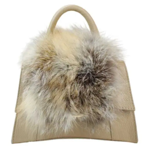 About this product MDOBE Italian Beige Leather Crossbody Bag Matching Real Fur 100% Leather Made in Italy Size: 9.4" x 5.9" x 3.7" Inside Zipp...
