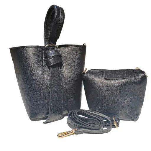 About this product BIBI Leather Bucket Bag & Pouch Long Leather Strap 00% Leather Size : 8.6" x 5.5" x 7.8" Made in Italy