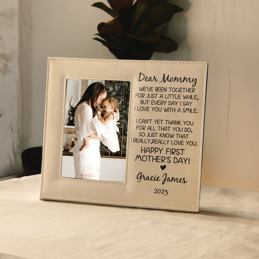 First Mother's Day Gift - This engraved natural wood picture frame is a perfect gift for new moms celebrating their first Mother's Day with their l...